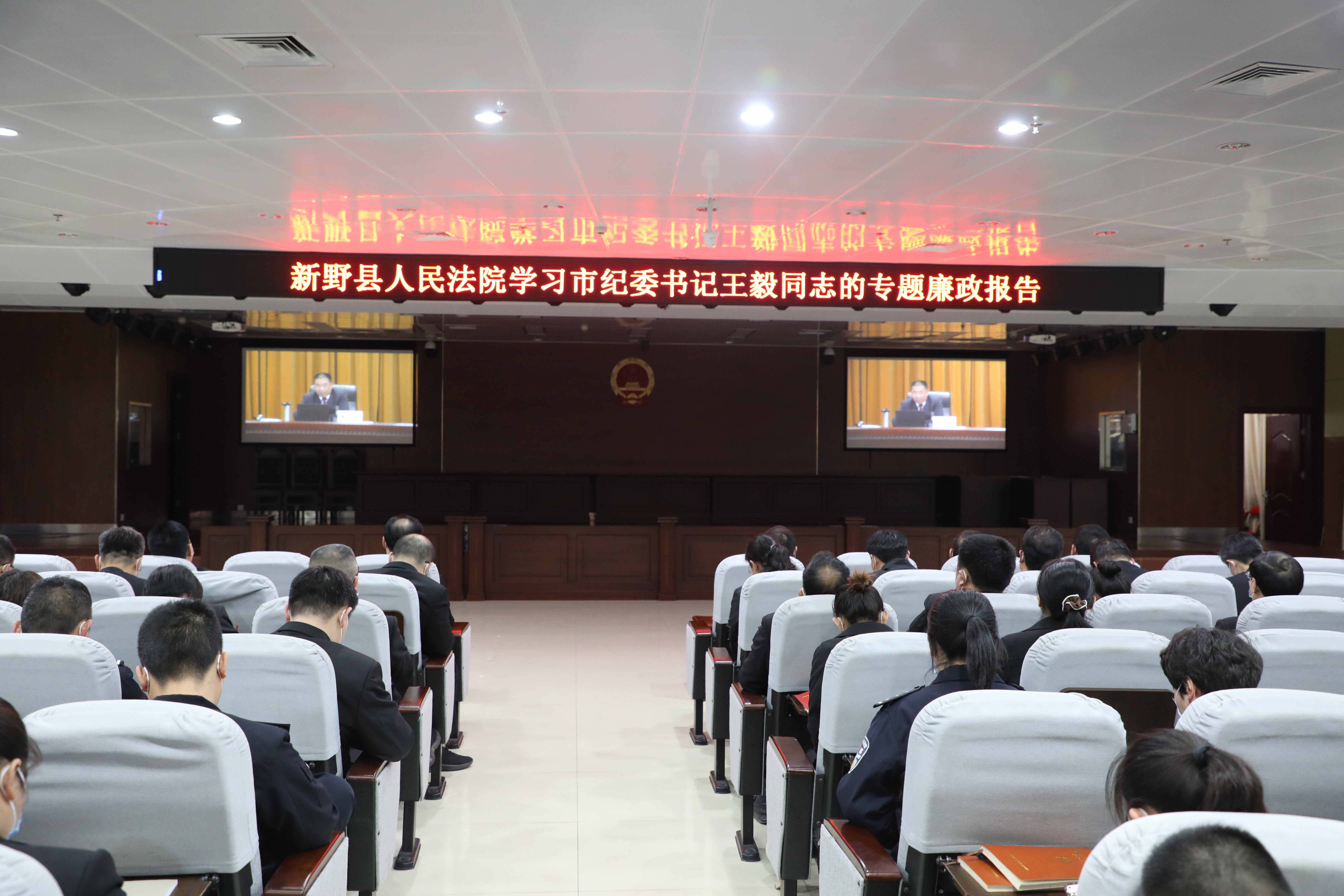 为扎实推进政法队伍教育走深走实,4月6日晚,365bet官网欧洲_必定赢365线路检测_365平台怎么注册县人民法院组织全体干警集中学习了南阳市委书记张文深所授政法队伍教育整顿主题党课,观看了南阳市委常委、市纪委书记、监委主任王毅专题廉政报告视频。