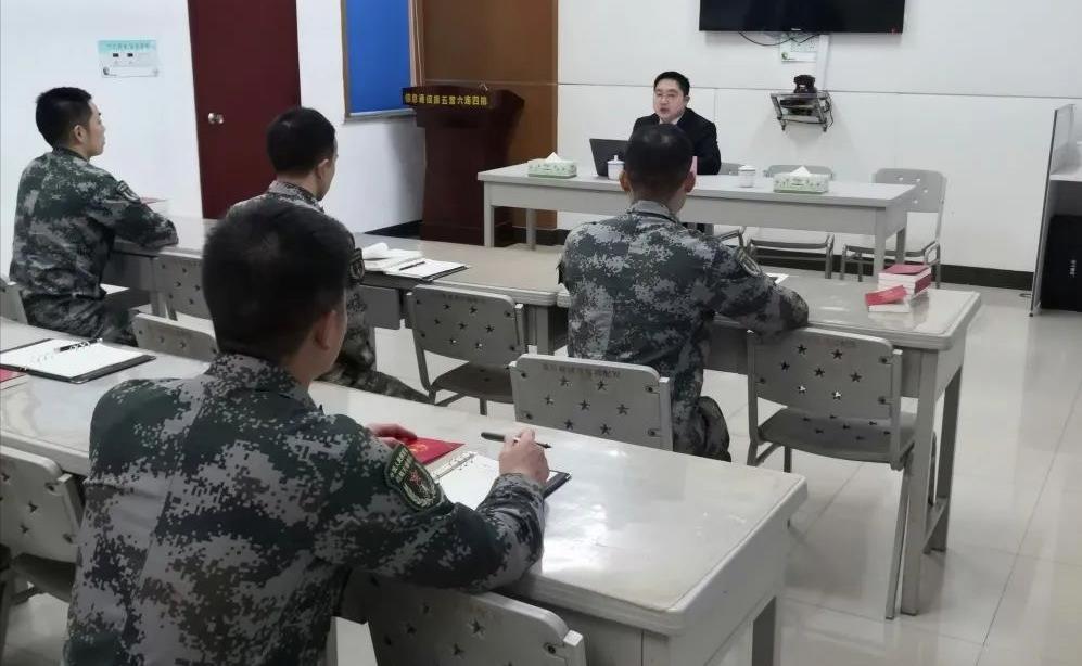 为深入推进政法队伍教育整顿,扎实开展“我为群众办实事”活动,推动军地深度融合发展, 4月22日上午,新县法院涉军维权合议庭成员、员额法官黄兴一行前往新县驻军军营开展“送法进军营”活动。