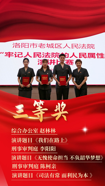 青春正当时,不予负流年。10点整,“牢记人民法院的人民属性”主题演讲比赛如期举行。来自各部门的9名青年干警,结合各自工作岗位实际谈体会、抒情怀,或慷慨激昂,或娓娓道来......大家以自身所见、所闻、所感,用一个个身边干警的感人事例、一句句发自肺腑的深情表白,诠释初心使命,诉说担当作为。