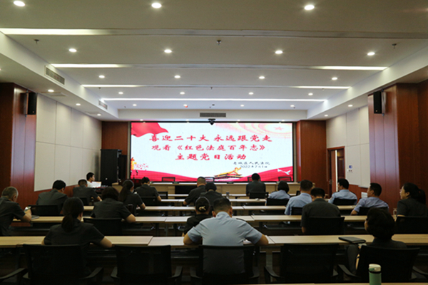 观红色法庭志,传承百年司法初心。16点30分,党员干警集中观看了红色纪录片《红色法庭百年志》。随着一帧帧感人画面的闪过,大家共同回顾了人民法院走过的百年发展历程,胸中激荡着作为法院人奋发有为的一腔热血,不断激励着自身锤炼忠诚公正的政治品格,提升担当作为、知重负重、攻坚克难的精气神和真本领。