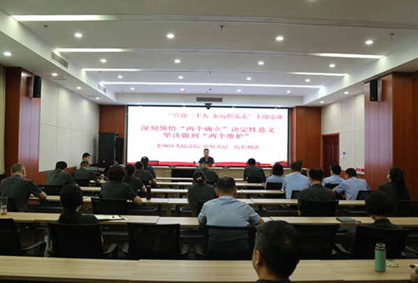 政治上的坚定,源于理论上的清醒。下午18点,杨洪为全院干警讲授了题为《深刻领悟“两个确立” 坚决做到“两个维护”——推动法院工作高质量发展》专题党课。