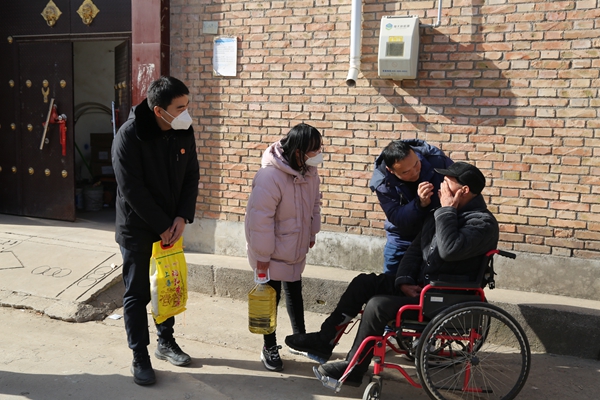 在贫困户王某某家,张朕一行将慰问品送到群众手中,并仔细询问了王某某一家现在的生活状况。王某某说:“有了政府的帮助,现在的生活过得比之前好太多了,也很感谢您们这么冷的天专程跑一趟,谢谢,真心地感谢!”