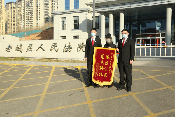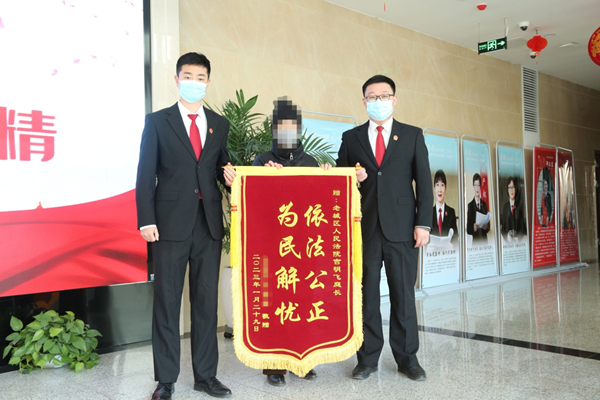 1月30日,老城区法院刑庭收到了被害人家属送来的印有“依法公正,为民解忧”的锦旗。李阿姨一边将锦旗递给法官,一边说“感谢法院高效执法,感谢吉法官为我们费心费力,帮助我们渡过难关……”