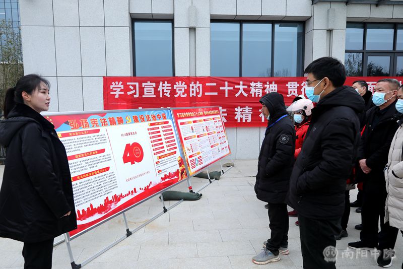 12月4日上午,南阳中院行政庭全体干警在党组成员、副院长宋长青同志的带领下,走上街头,积极开展宪法宣传活动,通过摆放普法展板、设置咨询台,为过往群众发放宪法宣传读本、宣传手册,现场解答群众法律咨询问题等方式,向全社会普及宪法法律知识,使宪法精神深入人心,以宪法精神凝心聚力,广大市民展现出的热情为此次寒冬中的宪法宣传活动增添了温度。