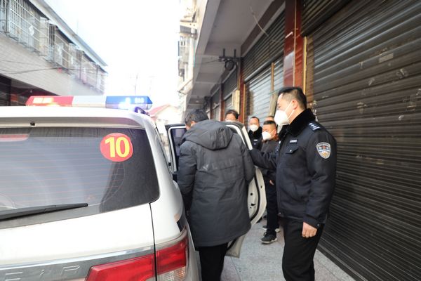 执行干警将被执行人赵某带进警车