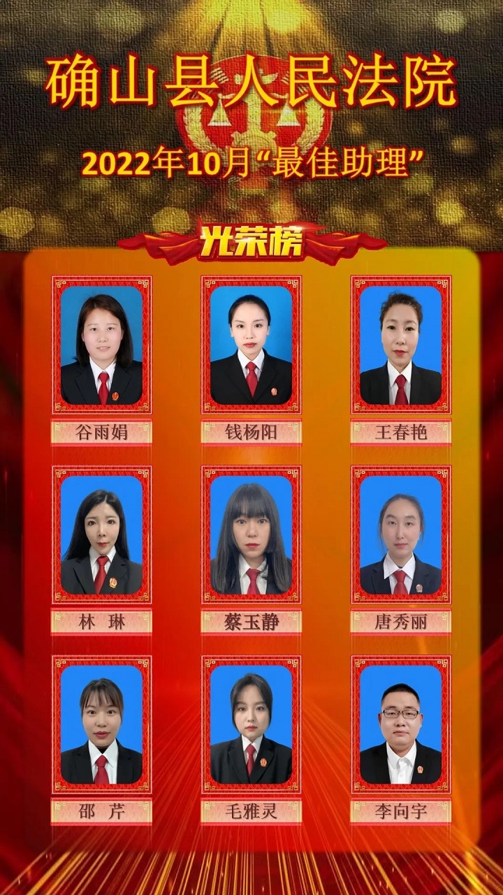 学习身边榜样|确山法院2022年10月“办案标兵”和“最佳助理”名单来啦