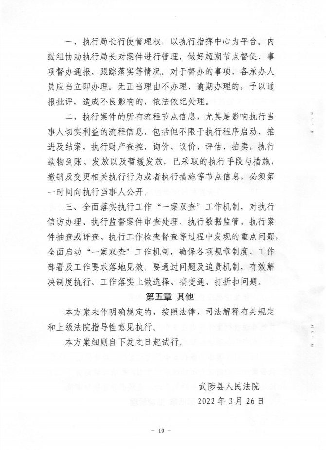 武陟县人民法院关于全面推行执行实施案件繁简分流实施方案(试行)