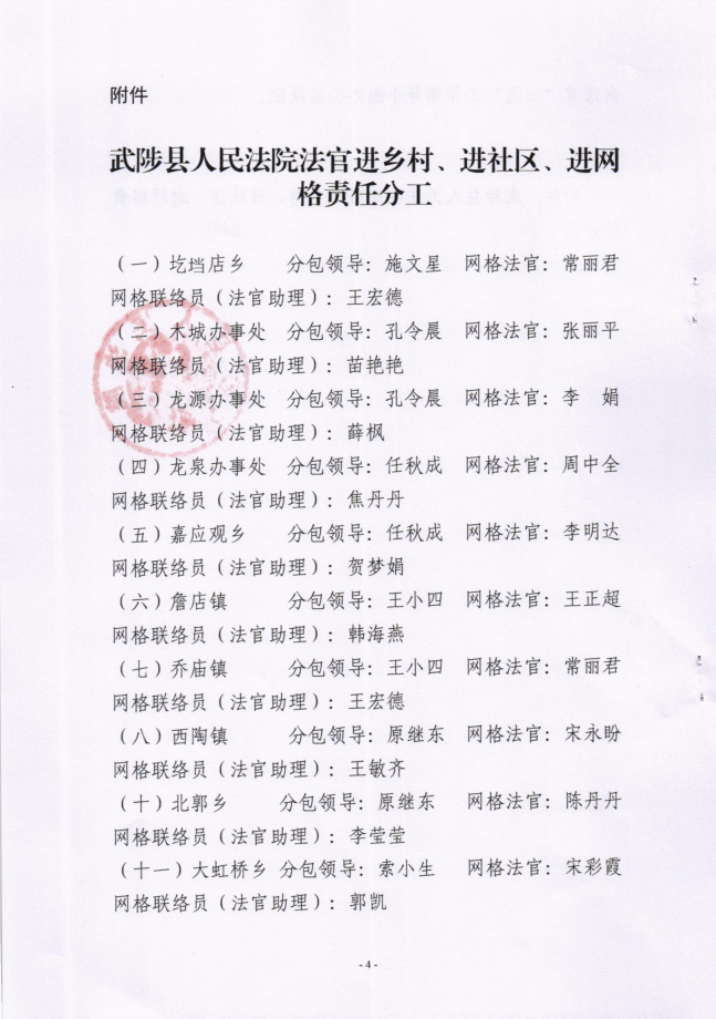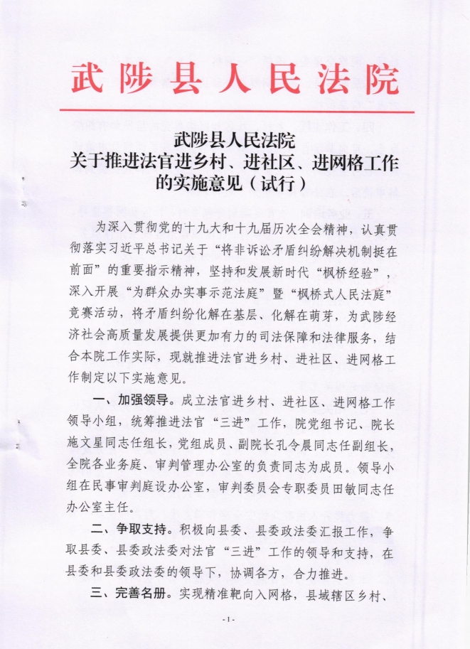 武陟县人民法院关于推进法官进乡村、进社区、进网格工作的实施意见(试行)