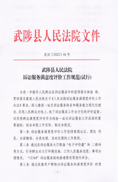 武陟县人民法院诉讼服务满意度评价工作规范(试行)