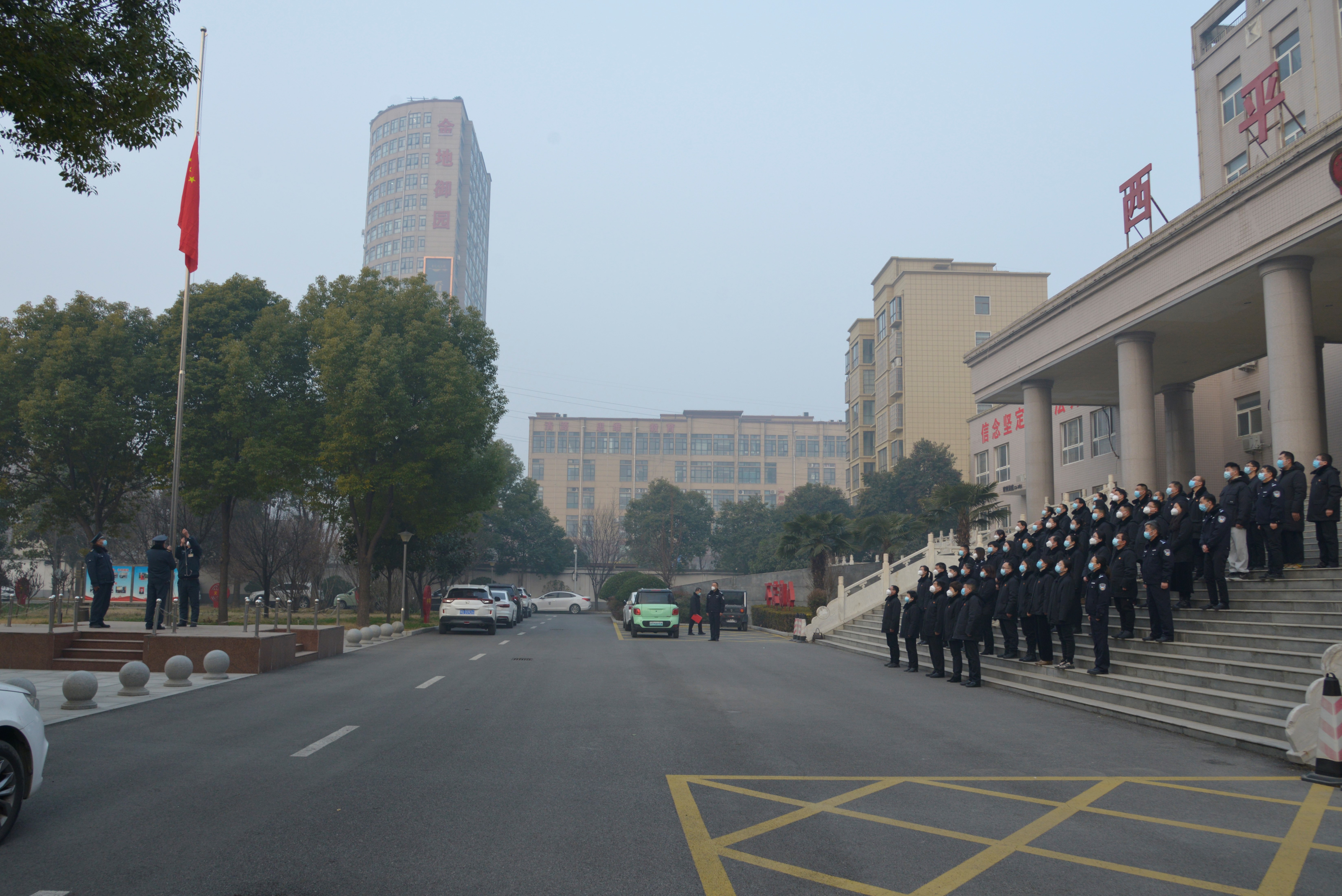 2023年1月3日,元旦节后上班第一天,为提振士气,开启新年新征程,西平县人民法院组织全体干警参加升国旗仪式。